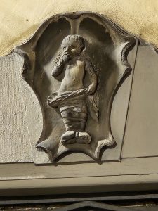 Boven de deur hing deze putto. Toen ik klein was, wist ik het zeker: dat was ik.