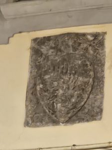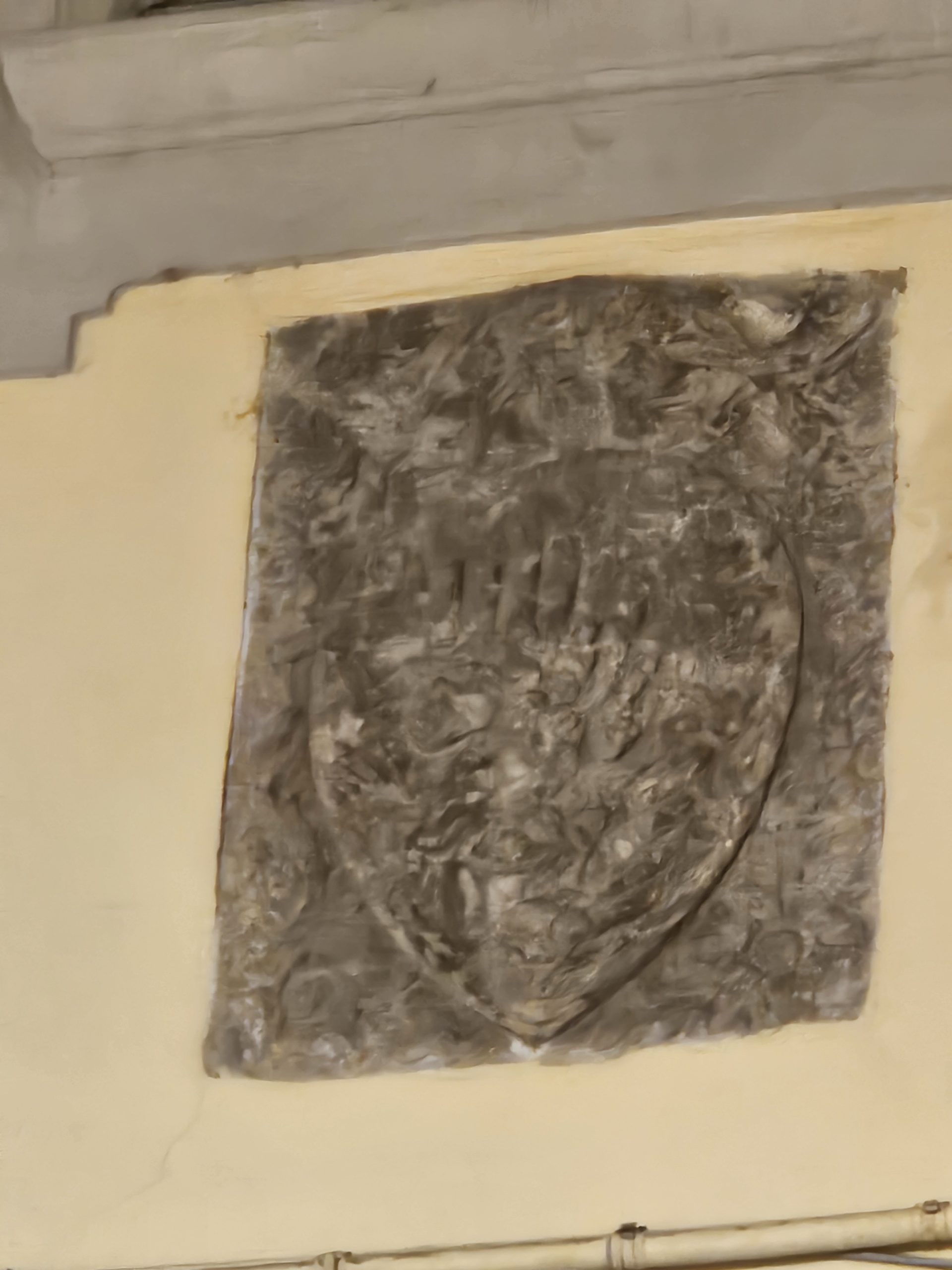 Direct naast de deur waar ik geboren ben, bevindt zich dit antieke wapenschild, uitgehouwen in de rotsen.